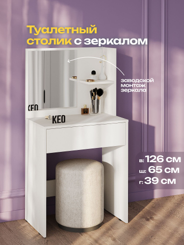 Туалетный столик с зеркалом и ящиками 126х65х39 см Кео СТЛ-110 белый