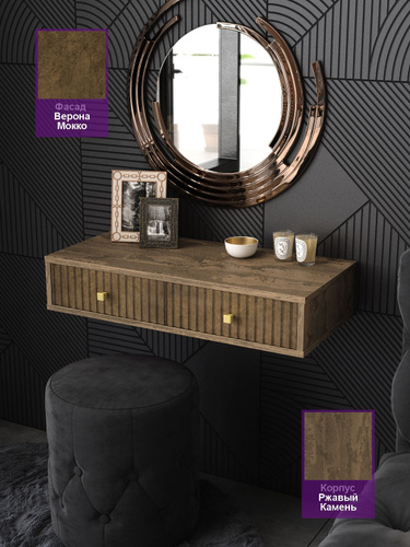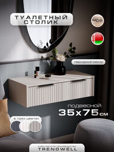 Туалетный столик подвесной 35х75 см под зеркало, консоль с 2 ящиками