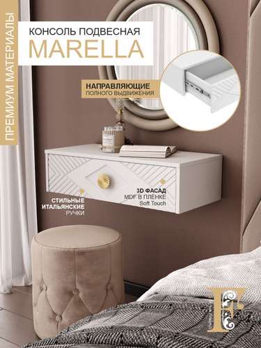 Консоль подвесная Марелла, белый / белый софт / золото