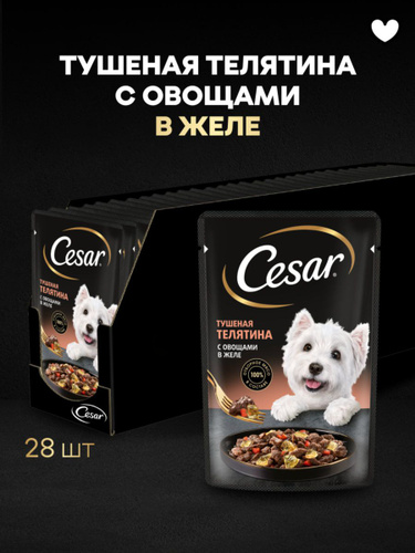 Влажный корм для собак Cesar с тушеной телятиной и овощами в желе, 28 шт x 85 г