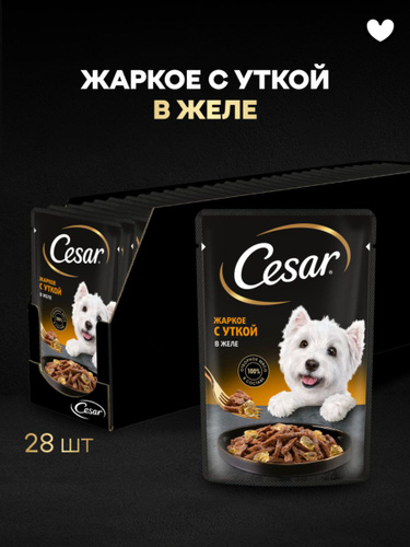 Влажный корм для собак Cesar жаркое с уткой в желе, 28 шт x 85 г