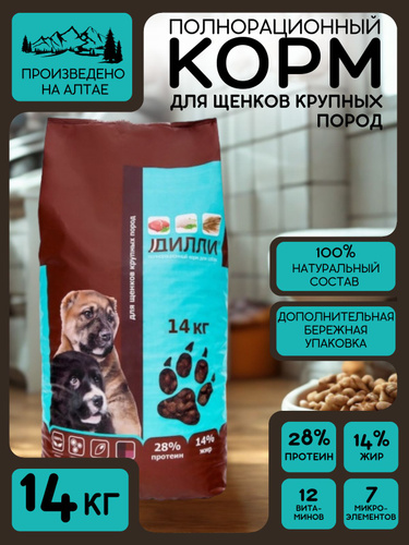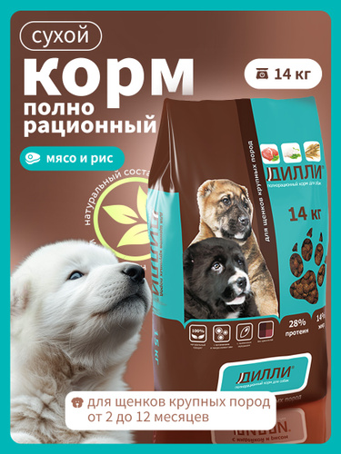 Полнорационный корм "ДИЛЛИ" 14 кг. для щенков крупных пород до 1 года