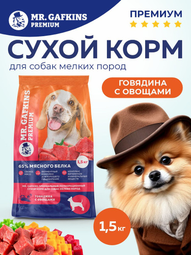 Корм для собак сухой для крупных и средних пород премиум класса Mr.Gafkins, Говядина с овощами, 1,5 кг