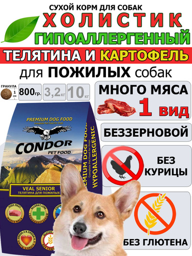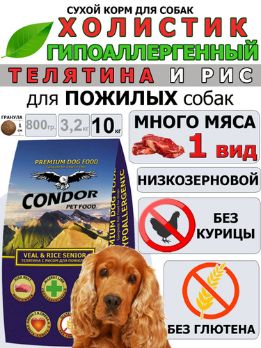 Сухой корм для пожилых собак Condor ( Кондор ) Veal & Rice Senior Телятина с рисом, 10кг