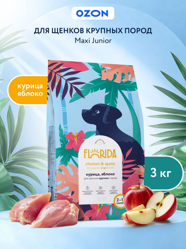 FLORIDA Сухой корм для щенков крупных пород с курицей и яблоком 3 кг