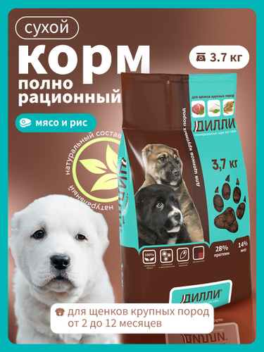 Полнорационный корм "Дилли" для щенков крупных пород, 3,7 кг