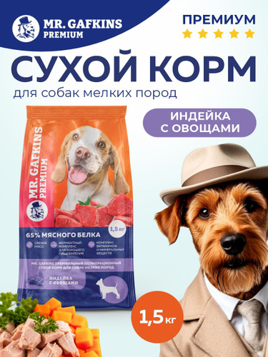 Корм для собак сухой для мелких маленьких пород премиум класса Mr.Gafkins, Индейка с овощами, 1,5 кг