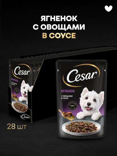 Влажный корм для собак Cesar с ягненком и овощами в соусе, 28 шт x 85 г