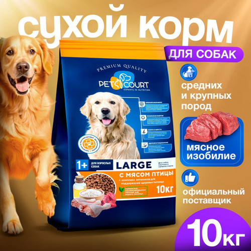 Корм для собак сухой PetCourt Large, для крупных пород от одного года, 10 кг