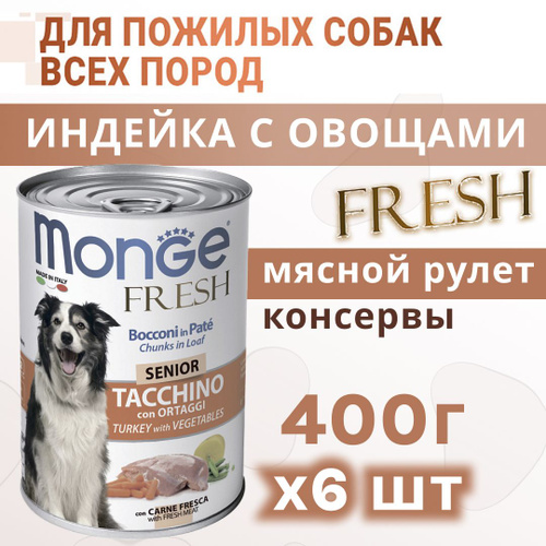 Влажный корм Монж Dog Fresh Chunks in Loaf для пожилых собак, мясной рулет из индейки с овощами, консервы 6шт x 400 г