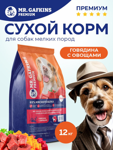 Корм для собак сухой для мелких маленьких пород премиум класса Mr.Gafkins, Говядина с овощами, 12 кг