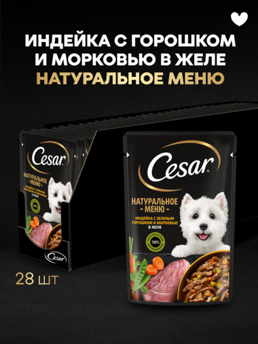 Влажный корм для собак Cesar Натуральная коллекция индейка с горохом и морковью в желе 28 шт по 80 г