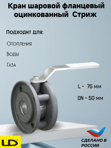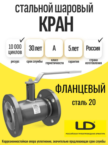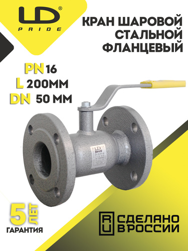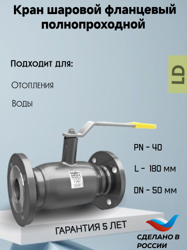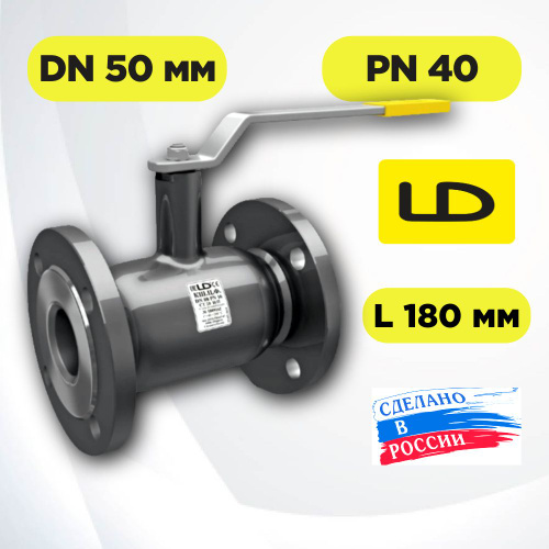 Кран шаровой стальной LD КШ.Ц.Ф Ду50 Ру40 фланцевый, полнопроходной, 180мм