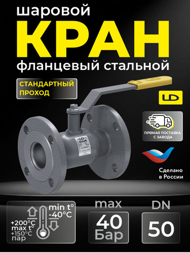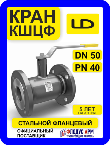 Кран шаровой стальной LD фланцевый DN 50мм PN40, КШ.Ц.Ф. 050.040.Н/П.02, стандартнопроходной