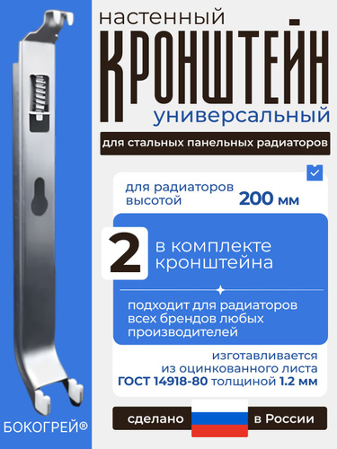 Комплект из 2 кронштейнов для панельного радиатора высотой 200мм, настенный