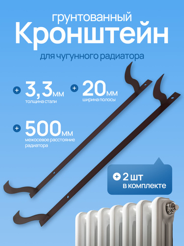 Кронштейн двойной на полосе для чугунных радиаторов (500мм) неокраш.2(ШТ)