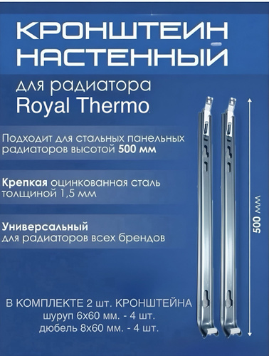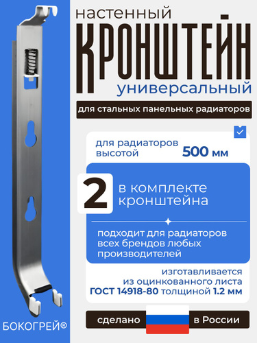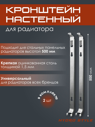 Установочный кронштейн стальных панельных радиаторов высотой 500мм, 2шт
