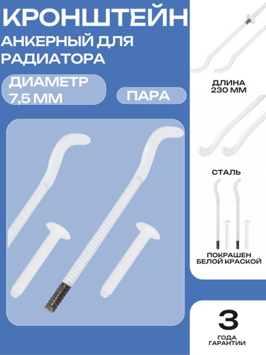 Анкерный кронштейн для радиатора с дюбелем 7 мм(пара)