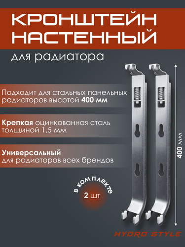 К17.34 Кронштейн настенный для стальных панельных радиаторов высотой - 400 мм, 2 шт.