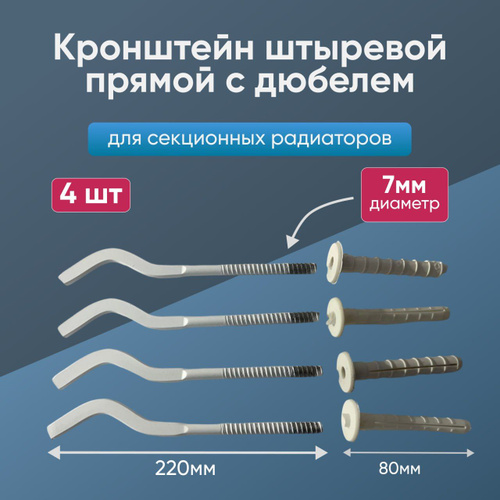 Комплект плоских кронштейнов с дюбелями 7,4х240мм / кронштейн для радиатора отопления