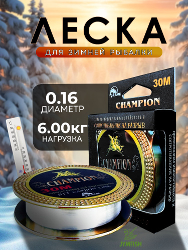 Леска зимняя CHAMPION - 0.16мм монофильная морозостойкая для зимней рыбалки