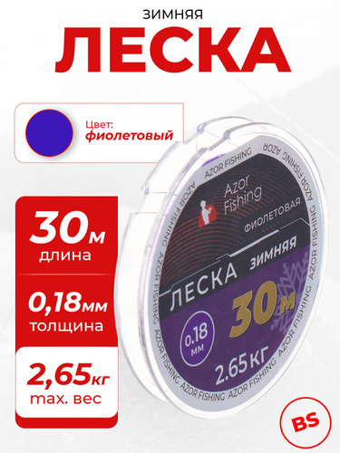 Леска для зимней рыбалки 30 м, 0.18 мм, 2.65 кг, фиолетовая AZOR FISHING рыболовная, зимняя, монофильная