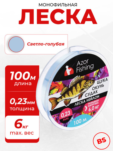 Леска для рыбалки "Щука, Окунь, Судак", нейлон, 100 м, 0.23 мм, разрывная нагрузка 6.0 кг, светло-голубая