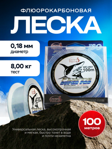 Флюорокарбоновая леска для рыбалки, размотка: 100 м, толщина: 0.18 мм