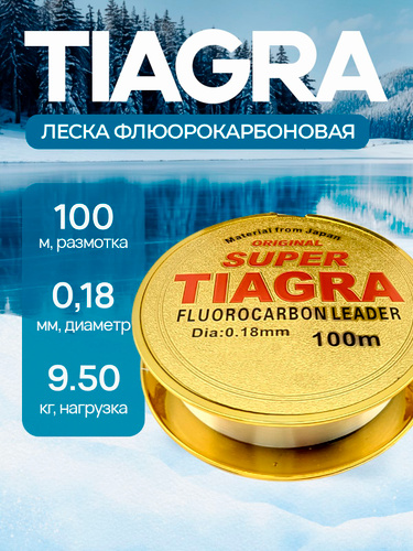 Леска флюрокарбоновая TIAGRA 0.18 мм для зимней и летней рыбалки