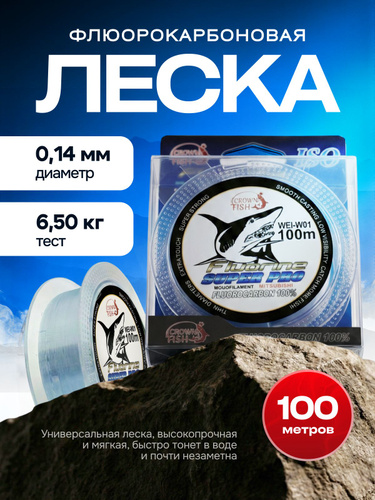 Флюорокарбоновая леска для рыбалки, размотка: 100 м, толщина: 0.14 мм