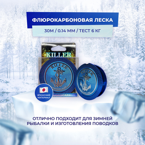 Леска рыболовная флюрокарбоновая 0.14мм, 30м 6 кг