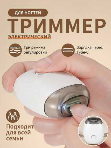 Триммер для ногтей электрический белый с подсветкой машинка для стрижки ногтей на ногах и руках