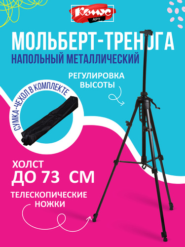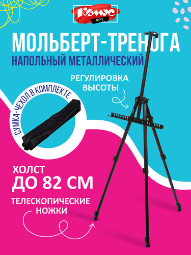 Мольберт для рисования тренога Комус Арт, напольный, металлический, в чехле, 82 см