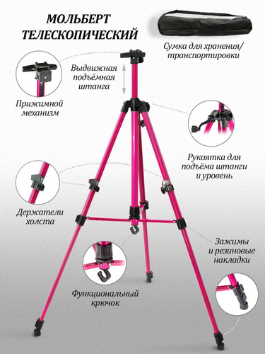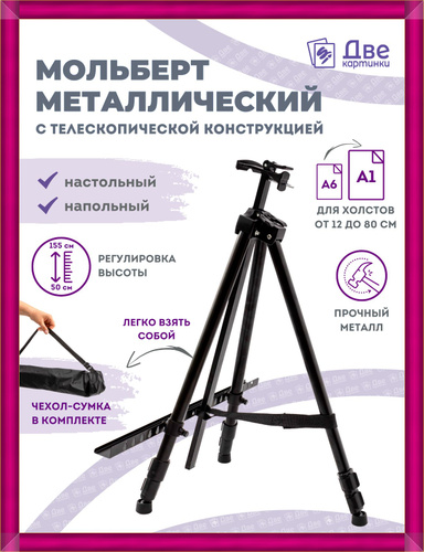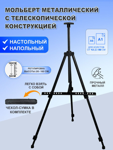 Мольберт для рисования настольный и напольный, складной телескопический металлический с чехлом