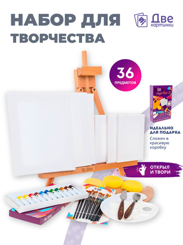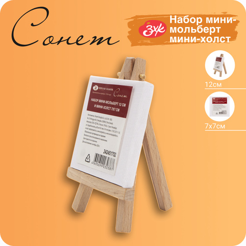 Настольный мини-мольберт 12х12 см и мини-холст на подрамнике7х7 см Сонет набор для живописи