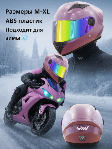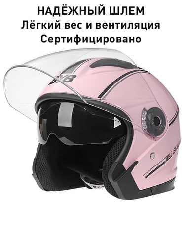 Мотошлем, цвет: светло-розовый, размер: Универсальный