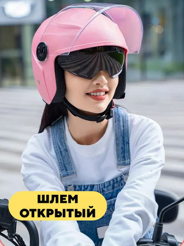 Шлем открытый с солнцезащитными выдвижными очками (розовый)