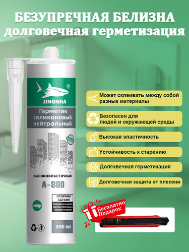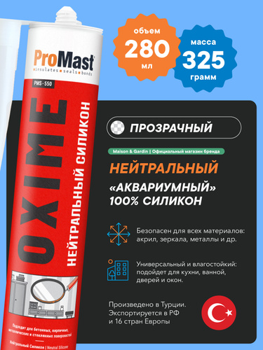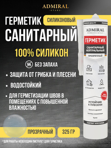 Силиконовый герметик для стекла и зеркал - гибкий, против плесени, 300 мл