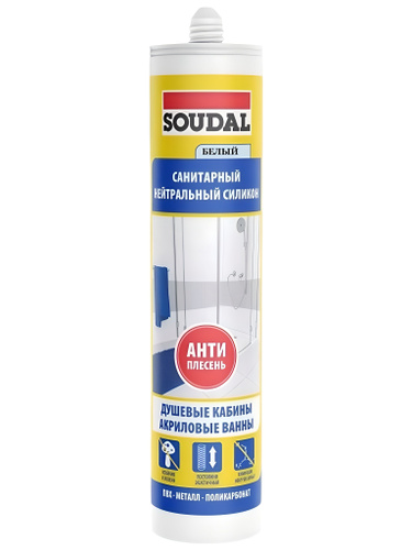 Герметик Soudal силиконовый, санитарный, нейтральный бесцветный, 280 мл