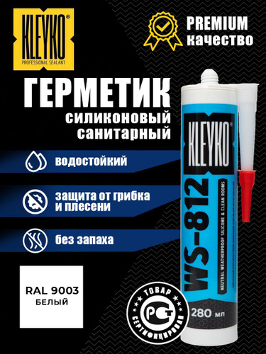 Герметик силиконовый санитарный водостойкий Клейко для ванной, белый