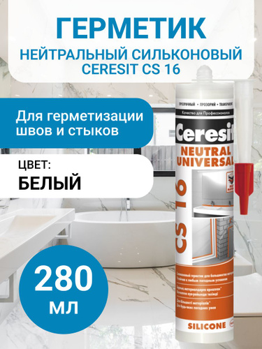 Нейтральный силиконовый герметик для ванной Ceresit CS 16, 280 мл