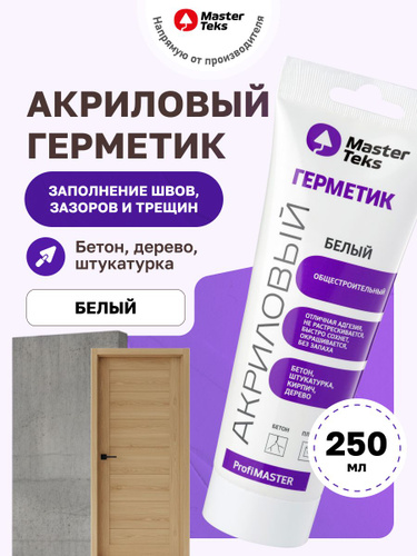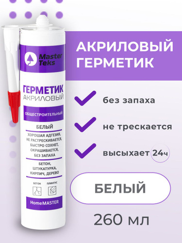 Герметик акриловый белый универсальный тюбик MasterTeks, 250 мл (Импорт)