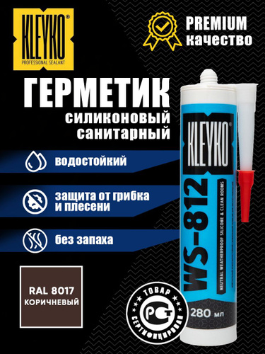 Герметик санитарный силиконовый водостойкий для ванной и туалета Клейко, коричневый