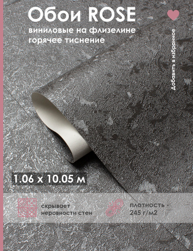 Обои флизелиновые 1.06 ГРАФИТ под штукатурку, плотные, метровые, 1,06*10.05 м