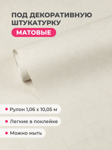 Обои флизелиновые 1,06 SmartWall 70647-12 Светло-бежевые Однотонные C эффектом штукатурки Без подгона Моющиеся 1,06х10,05 м для кухни, коридора, гостиной, спальни, комнаты подростка