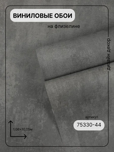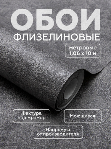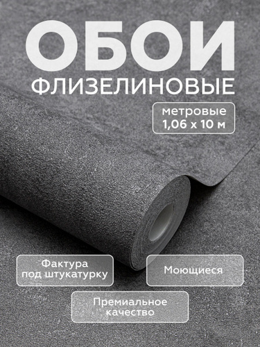 Обои флизелиновые 1.06 ГРАФИТ, БЕЗ ПОДГОНА, однотонные, плотные, метровые, 1,06*10.05 м
