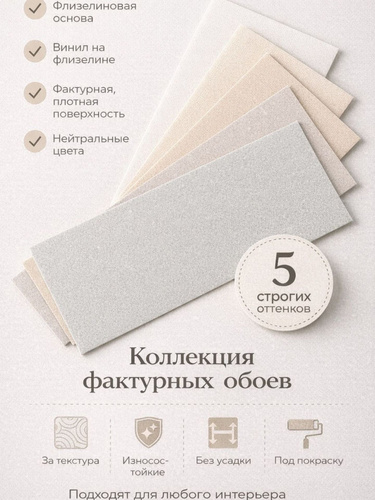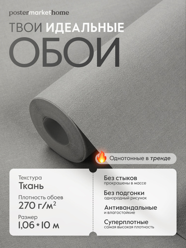 Обои виниловые на флизелине 1,06х10м, однотонные моющиеся, текстура ткани, для спальни и гостиной