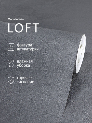 Обои виниловые на флизелине лофт, штукатурка темно-серая, однотонные, метровые, для коридора, Loft (Moda Interio)