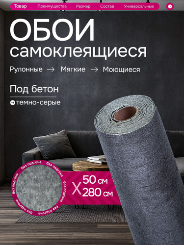 Обои темно серые, без подгона, плотные, ширина 0.53
