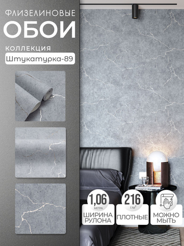 Обои флизелиновые 1,06 SmartWall 70647-44 Графитовые Однотонные C эффектом штукатурки Без подгона Моющиеся 1,06х10,05 м для кухни, коридора, гостиной, спальни, комнаты подростка